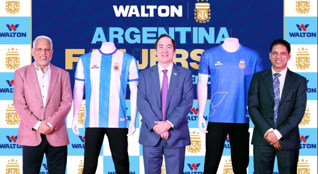 উল্লেখ্য, বিশ্বচ্যাম্পিয়ন আর্জেন্টিনা জাতীয় ফুটবল দলের অফিসিয়াল রিজিওনাল স্পন্সর ওয়ালটন। আর্জেন্টাইন ফুটবল অ্যাসোসিয়েশন (এএফএ) এর সঙ্গে চুক্তি স্বাক্ষরের মাধ্যমে আর্জেন্টিনা জাতীয় ফুটবল দলের সঙ্গে যুক্ত হয়েছে ওয়ালটন। এর মাধ্যমে আর্জেন্টিনা জাতীয় ফুটবল দলের সব ধরনের ব্র্যান্ডিং স্বত্ত্ব লাভ করেছ ওয়ালটন।