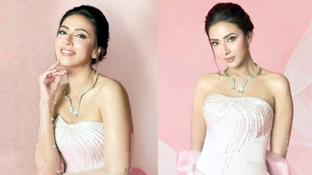 প্রকাশ করা ছবিতে দেখা যায়, মিমের পরনে থাকা অফ-শোল্ডার গাউনের পেছনে ছিল দীর্ঘ ট্রেইল। গলায় ঝলমলে পাথরের নেকলেস, হাতে স্বচ্ছ গ্লাভস এবং পরিপাটি করে বাঁধা চুলে তিনি যেন ছড়িয়ে দিচ্ছিলেন রাজকীয় আবহ। তার অভিব্যক্তি আর ভিন্ন ভিন্ন ভঙ্গির পোজ পুরো লুকটিকে দিয়েছে আরও অনন্য মাত্রা।