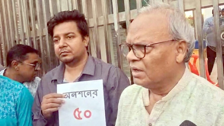 এরই মধ্যে বৃহস্পতিবার (৬ নভেম্বর) বিকেলে বিএনপির পক্ষ থেকে সংহতি জানাতে অনশনস্থলে যান রুহুল কবীর রিজভী। পরে আমজনতা দলের সদস্যসচিব মো. তারেক রহমান নিজের ভেরিফায়েড ফেসবুক পেজে লাইভে এসে রিজভীর প্রতি কৃতজ্ঞতা প্রকাশ করেন।