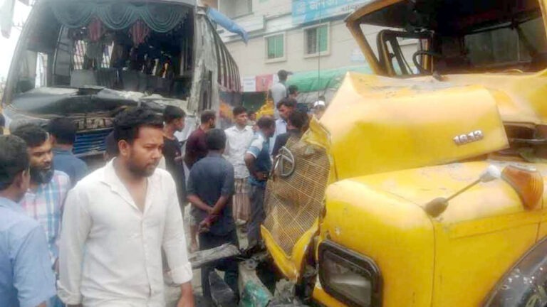 টাঙ্গাইলের ঘাটাইলে যাত্রীবাহী বাস ও বালুভর্তি ট্রাকের মুখোমুখি সংঘর্ষে বাসের চালক ও হেলপার নিহত হয়েছেন।