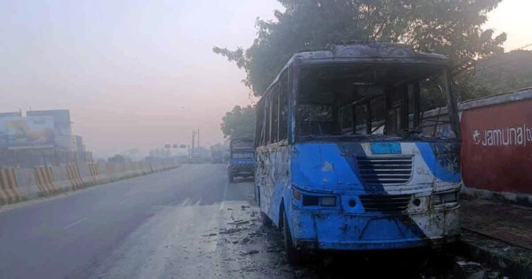 নারায়ণগঞ্জে দাঁড়িয়ে থাকা বাসে দুর্বৃত্তদের আগুন
