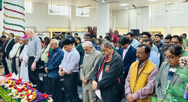 মহান বিজয় দিবস ও থ্যাংকস গিভিং উদযাপন উপলক্ষে শহিদ ওসমান হাদির স্মরণে এক মিনিট নীরবতা পালন করেছে নটর ডেম ইউনিভার্সিটি বাংলাদেশ-এর কর্তৃপক্ষ, শিক্ষকবৃন্দ ও সকল কর্মকর্তা-কর্মচারী।