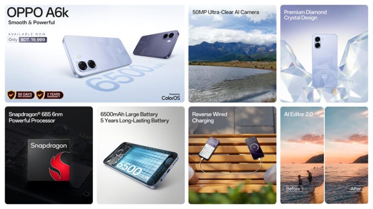 পহেলা বৈশাখের উৎসবকে সামনে রেখে আনুষ্ঠানিকভাবে সম্পূর্ণ নতুন অপো এ৬কে উন্মোচন করেছে অপো। বাংলাদেশজুড়ে ব্যবহারকারীদের জন্য ‘স্মুথনেস উইদাউট লিমিট’-এর অভিজ্ঞতা নিশ্চিত করতে এটি নিয়ে আসা হয়েছে।