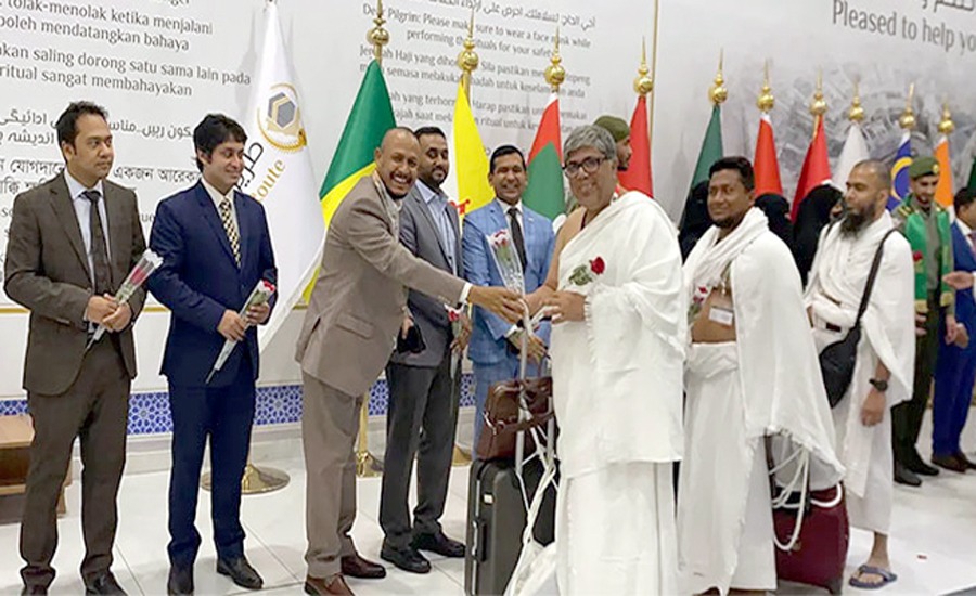 বিমানবন্দরে বাংলাদেশি হজযাত্রীদেরকে অভ্যর্থনা জানান সৌদি আরবে নিযুক্ত বাংলাদেশের রাষ্ট্রদূত মো. দেলওয়ার হোসেন ও কাউন্সিলর (হজ) মো. কামরুল ইসলাম।