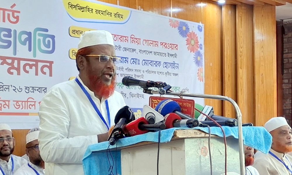 শুক্রবার (২৪ এপ্রিল) দুপুরে ঝিনাইদহ শহরের একটি পার্কের মিলনায়তনে জেলা জামায়াত আয়োজিত ওয়ার্ড সভাপতি সম্মেলনে প্রধান অতিথির বক্তব্যে এসব কথা বলেন তিনি।